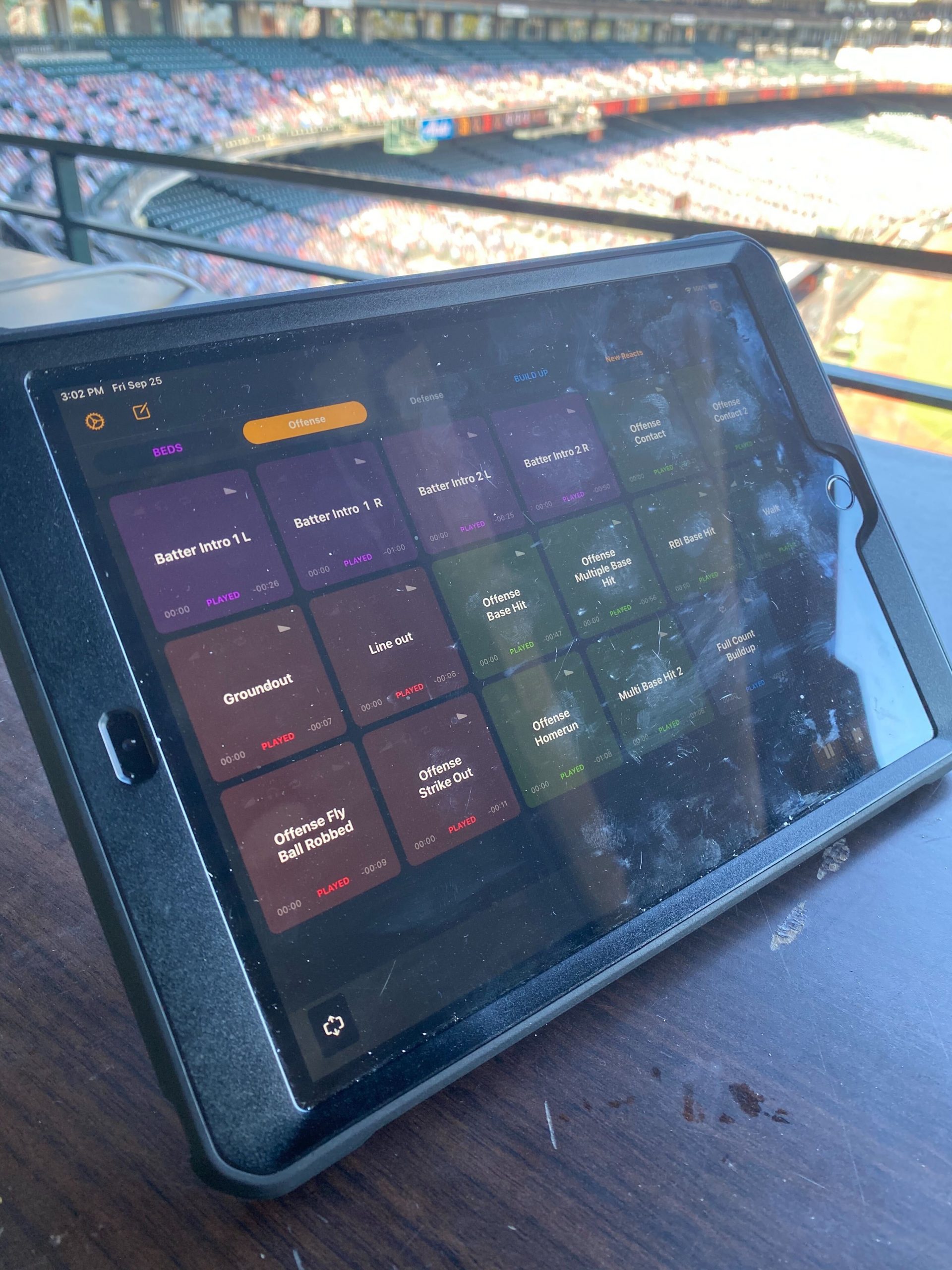 While watching SF Giants games on television or listening on the radio, you hear the crowd roar, reacting to plays – as usual. But there are no fans in the stands! How does the production team do it? (Hint: On an iPad! See images below)